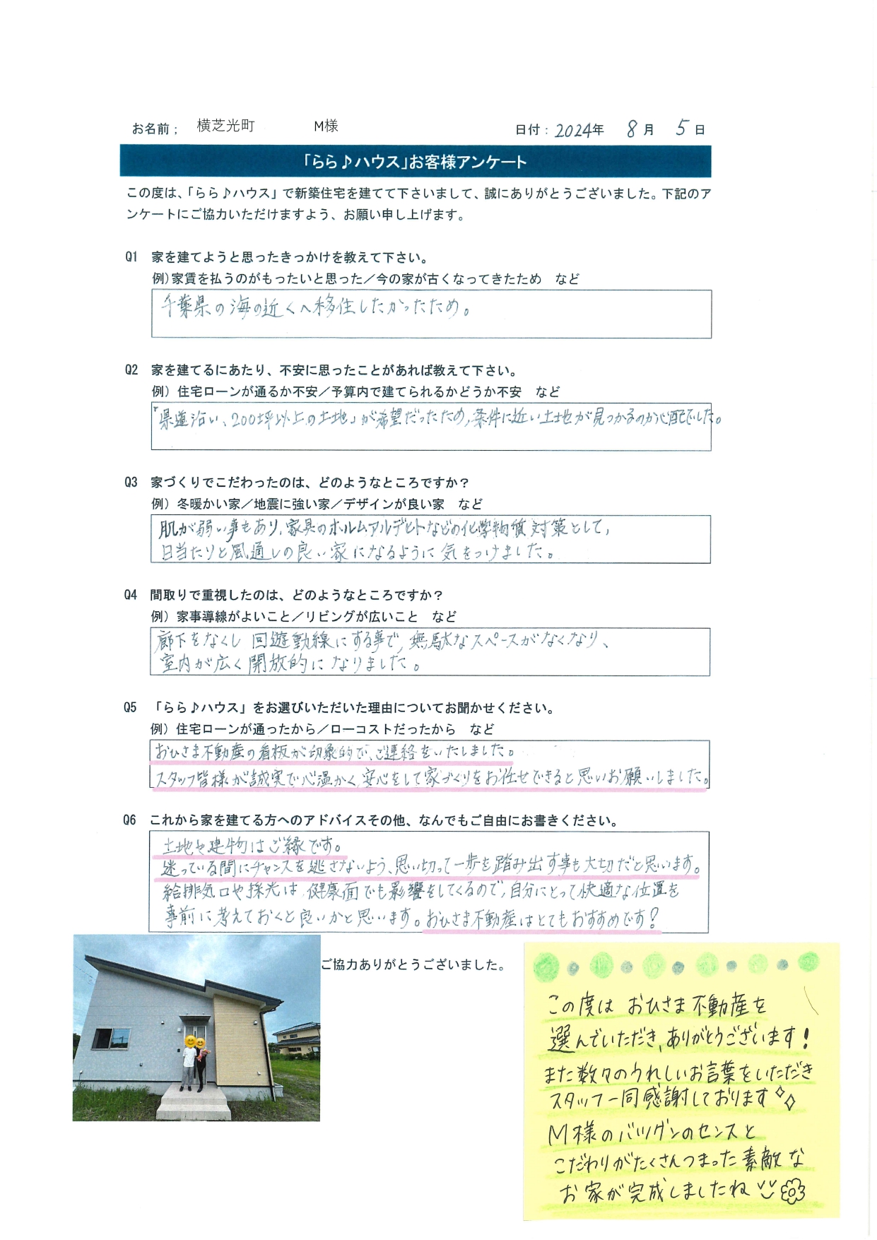 Q5. 「らら♪ハウス」をお選びいただいた理由について教えてください。