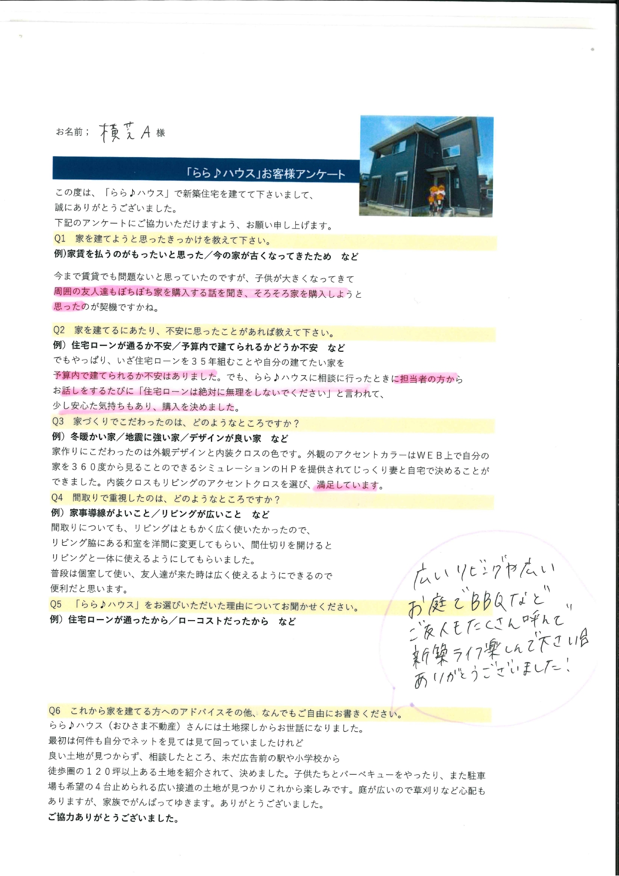 ららハウスさん(おひさま不動産)さんには土地探しからお世話になりました。